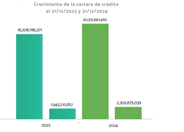 Al cierre del 31 de diciembre de 2024 la cartera de crédito alcanzó un balance total de DOP 21,432,768,286.63 (veintiún mil cuatrocientos treinta y dos millones setecientos sesenta y ocho mil doscientos ochenta y seis pesos con sesenta y tres centavos), lo que representa un incremento de DOP 2,426,291,319.33 (dos mil cuatrocientos veintiséis millones doscientos noventa y un mil trescientos diecinueve pesos con treinta y tres centavos) en comparación con el período anterior.