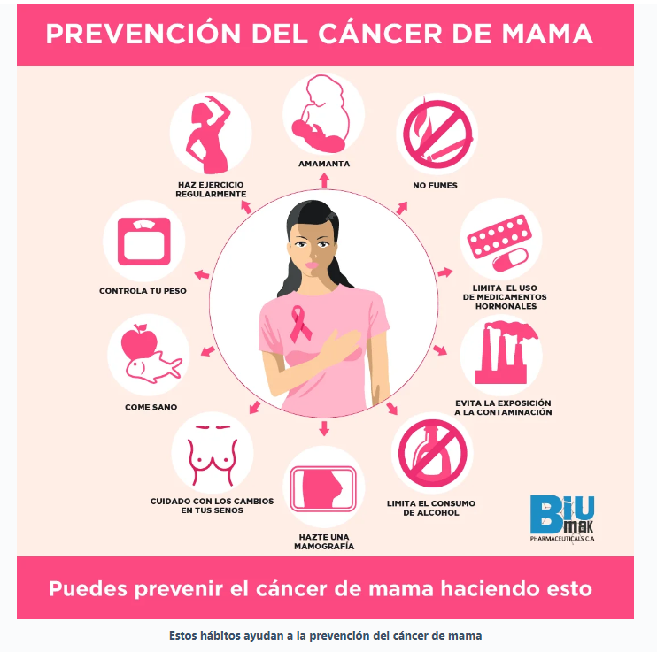 - Mantener un estilo de vida saludable: La alimentación equilibrada, el ejercicio regular y evitar el consumo excesivo de alcohol son factores que pueden ayudar a reducir el riesgo de cáncer de mama.